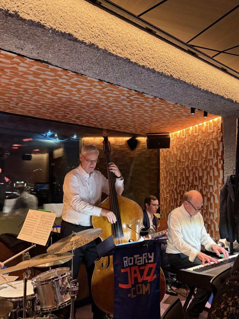 Yuri Kamanin, Präsident RC Salzburg International 2024/25 und Mitglied der Rotary Jazz Fellowship Austria, hatte die Idee, im Rahmen einer Tombola ein „Hauskonzert“ als Preis zu spendieren. Anfang November ging es bei Gewinnerin Irene Wagner über die Bühne. 50 Freund:innen kamen und erfreuten sich an einem Programm in zwei Teilen. Auf klassische Werke, dargeboten von Yuri Karmanin (Gitarre) und seinen Freund:Innen vom Mozarteum Salzburg, folgte der jazzige Teil mit Wolfgang Schneider (Trompete). Stücke von Antonio Carlos Jobim und Astor Piazzolla erzeugten gute Stimmung. Mit selbstgemachten Speisen (u.a. Lachsquiche, Apfelstrudel) und Gesprächen klang der Sonntag gemütlich aus und füllte das Spendenkörbchen. Rotary Jazz Austria freut sich über 1.500 Euro.